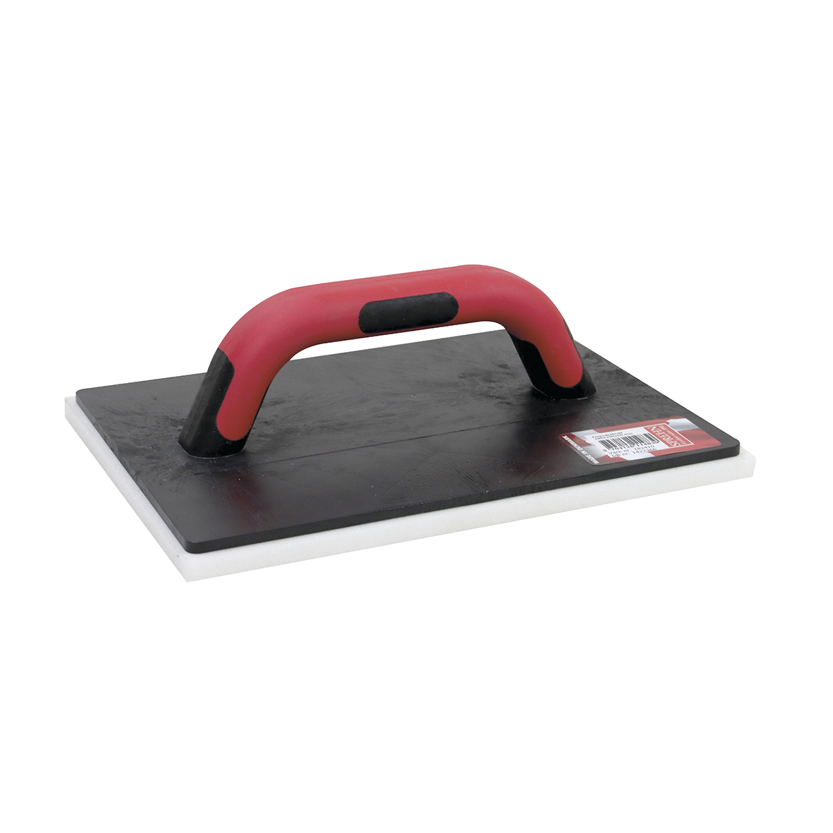 Pudsebræt 180x240 mm med 10 mm tyk skum til finish og finpudsning. Det ovalt formerede 2K greb giver ekstra grebsstyrke