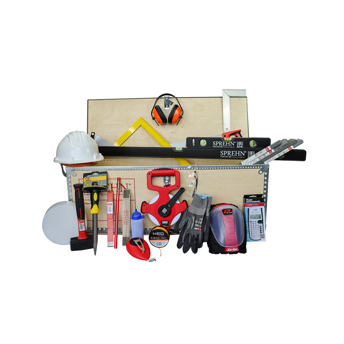Professionelt værktøjssæt til lærlinge på anlægsstruktørspecialet. Sættet indeholder de værktøjer, som foreskrives i fagskolernes værktøjsliste samt transport- og opbevaringskasse i træ. Leveres uden Promillevaterpas. Indhold: • SPREHN vaterpas med 3 libeller 120cm • SPREHN vaterpas med 3 libeller 40cm • SPREHN ansatsvinkel 250x125mm • SPREHN bankeklods i nylon rund Ø205x55mm • SPREHN brolæggerpløk 80cm 16x16mm - 10 stk • SPREHN elektrikermejsel tynd 240mm • SPREHN håndsav Basic • SPREHN mukkert med 2K greb 1,5kg. • SPREHN spandeske 180mm • SPREHN tommestok 2 meter 12 led • SPREHN tømrervinkel 800mm Rustfri Stål • SPREHN vibrationsdæmpende handske str. 10 • SPREHN lærlinge transportkasse træ L.880xB.310xH.300 mm• SPREHN brolæggersnor Ø1,0 mm 110m • SPREHN kridtsnor 30m inkl. Kridt • SPREHN tømrerblyant • BMI ramme båndmål 30m hvid 13mm glasfiber cm/cm • PLANO knæbeskytter m/air-GEL og plastkappe• NEO sikkerheds-/arbejdshjelm hvid • NEO sikkerhedsbrille • NEO høreværn gul snr 26 178g • Spidsmejsel 250mm • TEXAS lommeregner TI-30XB (sin, cos og tan) • DVA USB-nøgleBemærk: Der tages forbehold for udskiftninger af specifikke værktøjsbrands ved leverandørsvigt eller udgåede varer.