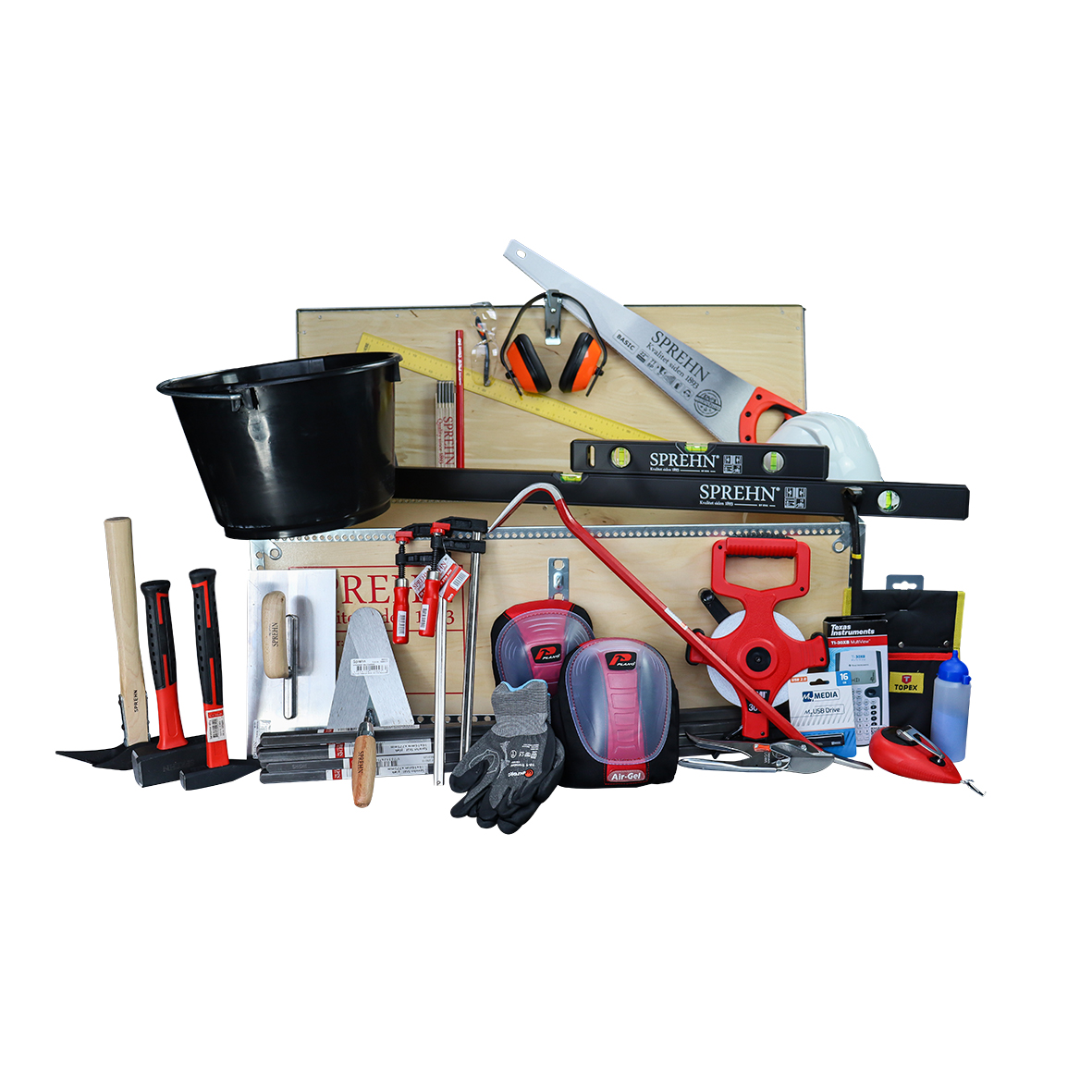 Professionelt værktøjssæt til lærlinge på bygningsstruktørspecialet.Sættet indeholder de værktøjer, som foreskrives i fagskolernes værktøjsliste samt transport- og opbevaringskasse i træ. Indhold: • SPREHN alu vaterpas med 3 libeller 120cm • SPREHN alu vaterpas med 3 libeller 40cm • SPREHN speed vinkel 175 mm alu • SPREHN bænkhammer med 2K greb 300g. • SPREHN glittebræt 130x280mm stål trægreb • SPREHN håndsav Basic • SPREHN koben 625X16mm • SPREHN lægtehammer 800g. • SPREHN mukkert med 2K greb 1,5kg. • SPREHN murerspand 15l sort plast med kraftig hank • SPREHN skruetvinge standard 50X300 mm (2 stk.)• SPREHN spandeske 180mm • SPREHN tommestok 2 meter 12 led • SPREHN tømrervinkel 800mm Rustfri Stål • SPREHN vibrationsdæmpende handske str. 10 • SPREHN lærlinge transportkasse træ L.880xB.310xH.300 mm• SPREHN kridtsnor 30m inkl. Kridt • SPREHN tømrerblyant • BMI ramme båndmål 30m hvid 13mm glasfiber cm/cm • LÖWE listesaks original uden plastgreb • NEO sikkerheds-/arbejdshjelm hvid • NEO sikkerhedsbrille • NEO høreværn gul snr 26 178g • PLANO knæbeskytter m/air-GEL og plastkappe • PLANO sømlomme• Bindetang 250 mm • DVA USB-nøgle • TEXAS lommeregner TI-30XB (sin, cos og tan)Bemærk: Der tages forbehold for udskiftninger af specifikke værktøjsbrands ved leverandørsvigt eller udgåede varer.