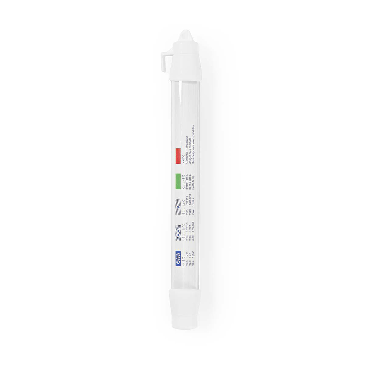 Gør det nemt at holde øje med temperaturen og sikre optimal opbevaring af dine fødevarer. Temperaturområde fra -50 °C til 30 °C giver pålidelig kontrol ved både køl og frost. Udstyret med krog og hul til ophæng for fleksibel placering. Elegant hvidt design med farvet display.