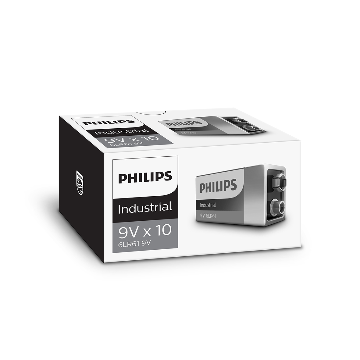 PHILIPS batteri industrial alkaline 9V 10-pak - 2079238
