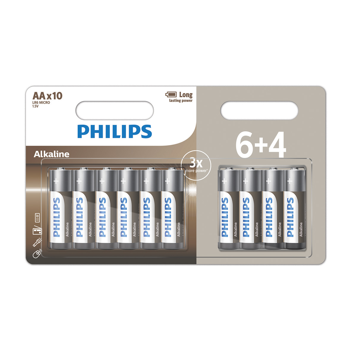 PHILIPS batteri tech alkaline AA 6+4-pak - 2109961