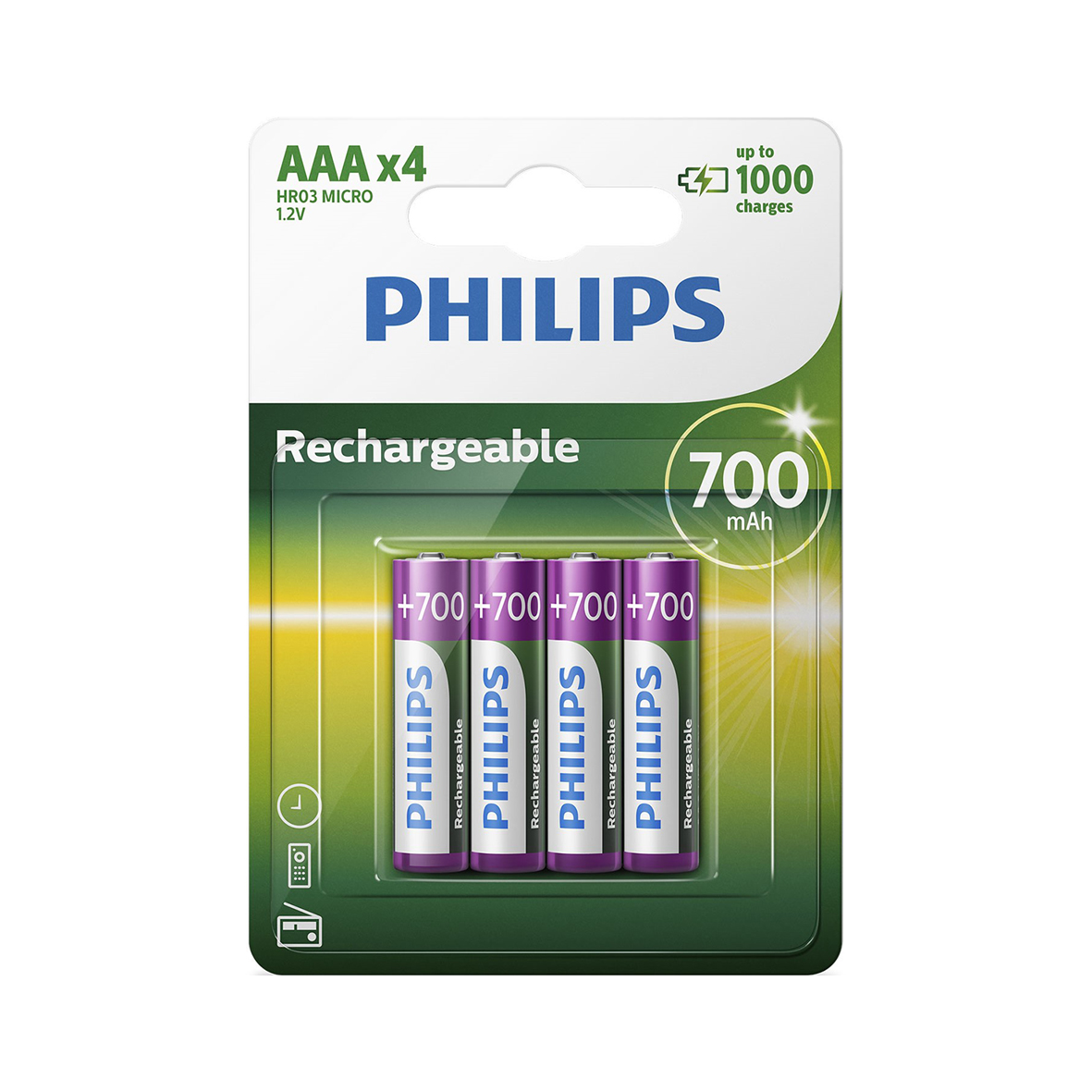 PHILIPS batteri genopladeligt NiMH AAA 4-pak - 2301945