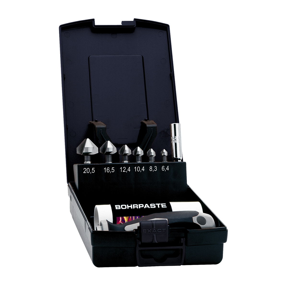 EXACT forsænkersæt HSS Ø6,3-20,5 mm m. 1/4" skaft / 9 dele kunststofkassette