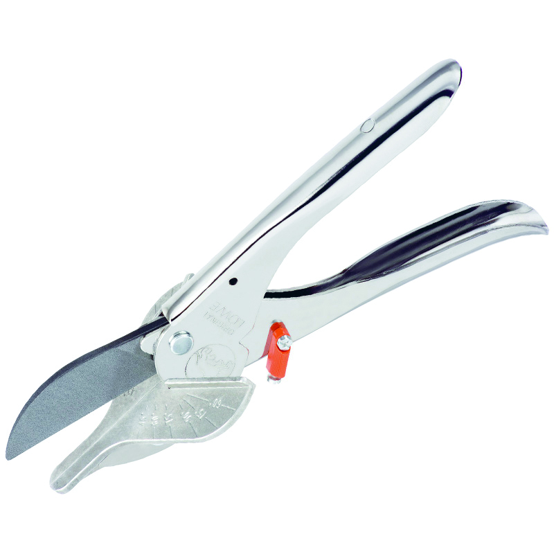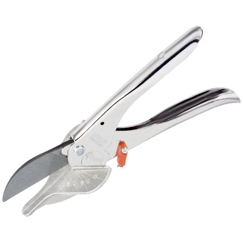 Listesaks med solidt stålgreb til klipning af træ, plastic-og gummilister i præcise vinkler. Löve listesaks er udført i forniklet CV-stål med 45° geringsanslag og spærreknap. Saksen er med en snitlængde på 50mm og med Specialcoated klinge for nem og skarp klipning